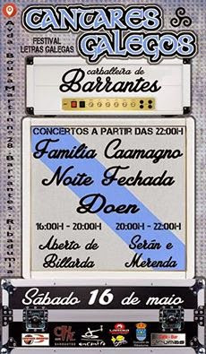 O sábado 16 de maio, organizado polos bares locais, vaise celebrar na carballeira de Barrantes un Festival de Rock en galego con actividades típicas da nosa cultura, para celebrar o día da nosa literatura: o día das Letras Galegas.