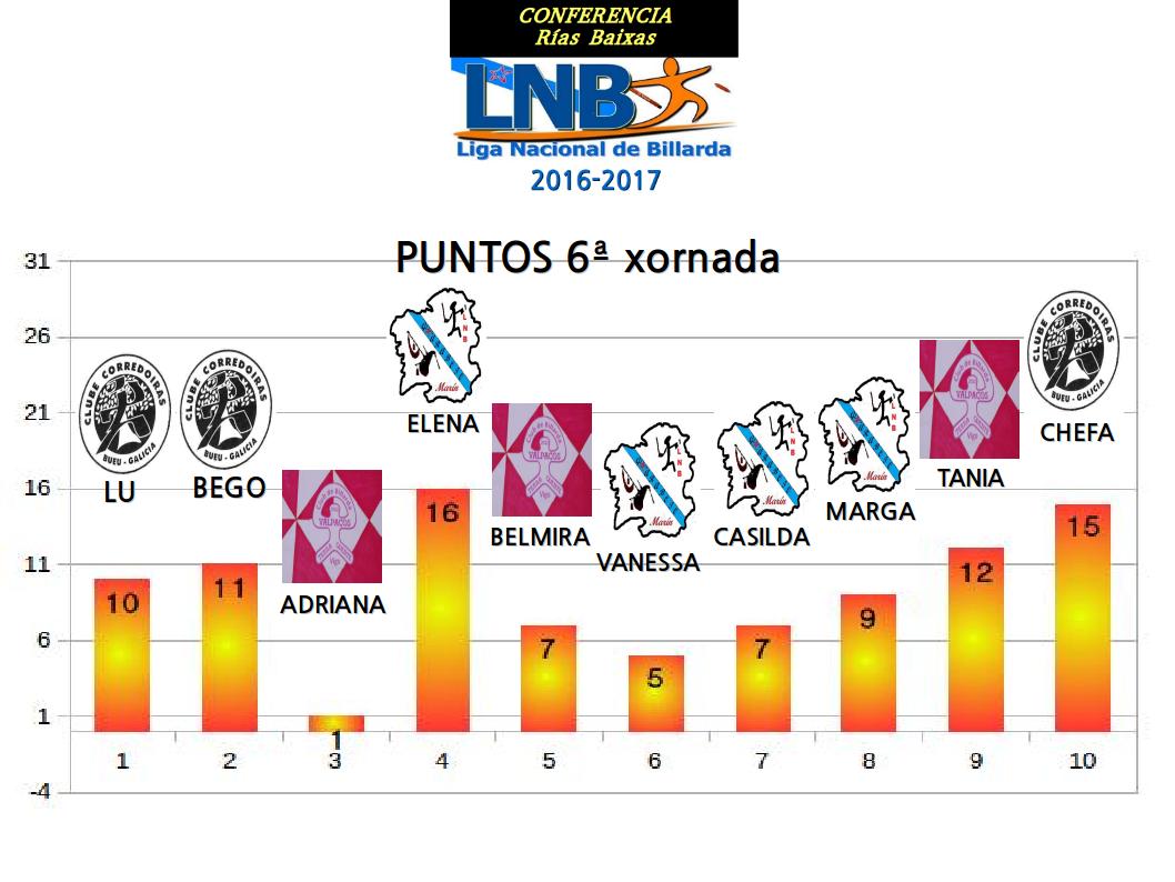 Nesta xornada de Soutomaior houbo 7 palanadoras que conseguiron 10 ou máis ptos, algo que só sucedera na primeira xornada de liga. Está claro que conforme avanza a temporada as xogadoras están mellorando os seus resultados. Foi Elena de Gharaboto quen se levou o triunfo da xornada con 16 ptos, no segundo lugar quedou Chefa con 15 ptos, que reaparecía despois da súa ausencia de tres xornadas, e terceira foi Tania con 12 ptos, quen tamén reapareceu despois de 4 xornadas.