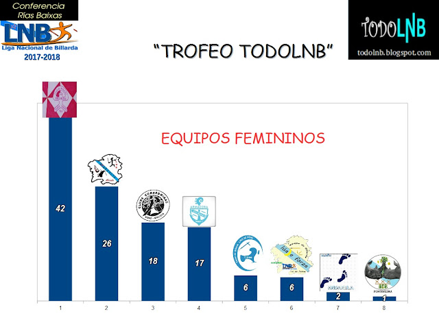 Creouse unha nova categoría dentro na LNB Rías Baixas patrocinada polo blog TODOLNB. A intención desta nova categoría é a de fomentar que os equipos se reforcen e busquen nenas, mozas e mulleres para xogar á billarda. Evidentemente, hai varios equipos que sempre tiveron presente que a muller é un valor fundamental para este deporte tradicional e nutríronse delas para fortalecerse.