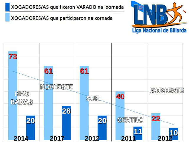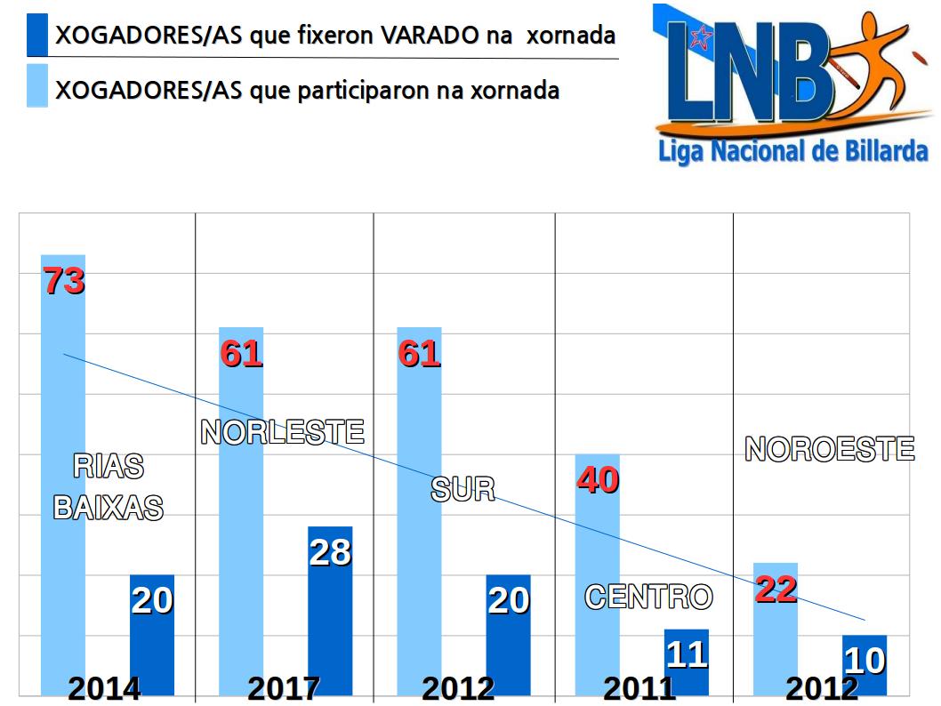 Curiosamente, a marca absoluta de número de varados foi conseguida por 20 palanadores/as, que non é a mellor marca en canto ao número de xogadores/as que fixeron varado nunha xornada, pois a Conferencia Norleste, aínda que ten a súa mellor marca por debaixo da Conferencia Rías Baixas con 38 varados conseguida esta temporada, si conseguíu que 28 xogadores/as conseguiran facer varado nunha xornada. Daquela, o reto é dobre para as nosas palanadoras e palanadores. Por unha beira, superar o número de varados nunha xornada, e por outra, que máis de 28 xogadoras/es fagan varado.