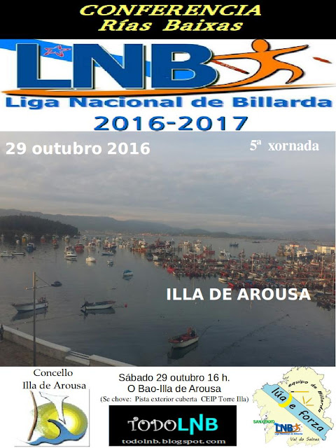 A xornada 5, deste vindeiro sábado na Illa de Arousa, será propicia para os grandes golpeadores da Conferencia, pois a superficie de terra e herba favorece a aquel@s que fan desprazar a billarda máis polo aire ca polo chan. De todos os xeitos, O Bao caracterízase por ventos fortes que poden dificultar este avance das billardas vía aérea. Para que serva de orientación aos deportistas da billarda, o sábado ás 16 horas ventos O.N.O. 3 nós e refachos de 4 nós.