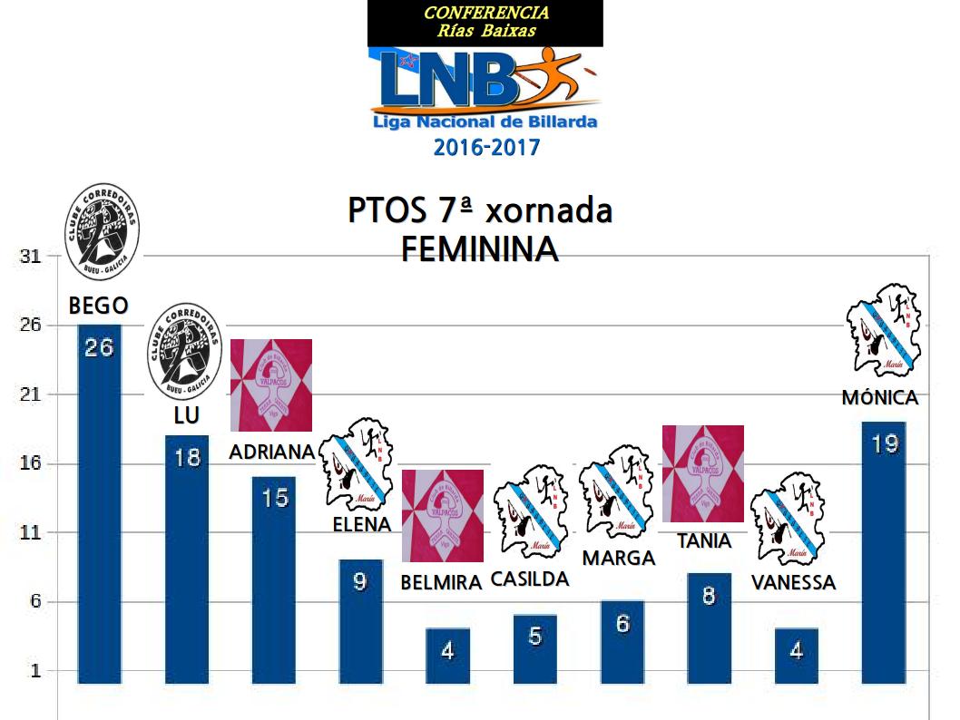 A xornada na categoría feminina estivo dominada, por vez primeira, por Mónica de Gharaboto que chegou ás semifinais dos cruces eliminatorios, ou sexa a un paso da final a tres. En segunda posición quedou Lu, que tamén alcanzou as semifinais. Bego foi terceira. Curiosamente, Bego foi quen máis puntos conseguiu na xornada (26 ptos), o que lle permitiu superar a Lu na clasificación xeral. Agora a de Bueu encabeza a categoría feminina con 5 puntos máis que a bicampioa nacional. Gran actuación a de Mónica (19 ptos) quen nas xornadas anteriores nunca chegara aos 10 puntos. A do Vinquiño adaptouse perfectamente ás condicións de temperatura e humidade do recinto de festas de Castrelo e brillou sobre o terruño cambadés. A outra palanadora que superou os 10 puntos foi Adriana de Valpaços Terra Quente, que se afianza na terceira posición do podio da categoría.