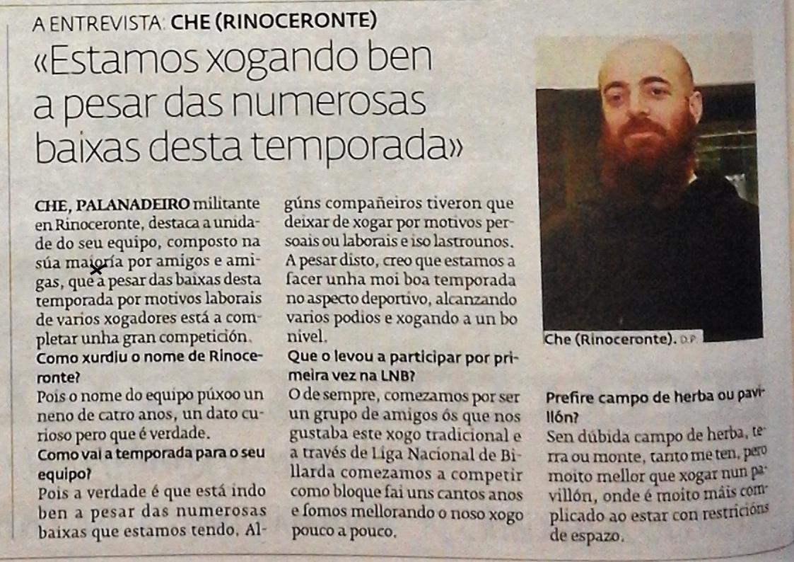 Unha vez contrastada a información co redactor do Diario de Pontevedra podemos confirmar que as respostas de Che están modificadas por expresa "recomendación" do equipo Rinoceronte. Seguiremos informando, pero podemos adiantar que Che quería destapar toda a estrutura organizativa do equipo pontevedrés, no que se refire ao tratamento de xogadores e xogadoras con sustancias que melloran o rendemento deportivo.