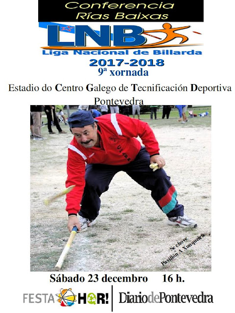 A última xornada do 2017 vai ser nun lugar especial, vai ser no Estadio do Centro Galego de Tecnificación Deportiva. Este lugar é o berce dos máis destacados deportistas galegos e das máis destacadas deportistas galegas da elite mundial en varias disciplinas deportivas. Este acercamento ao alcouve, onde se forman os mitos do noso deporte, significará o paso definitivo para incorporar a billarda ao plan olímpico internacional? Quen sabe?